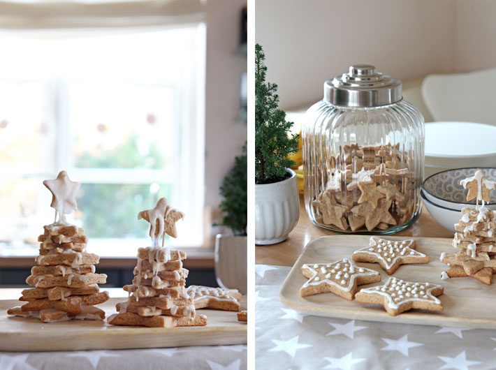 Und was eignet sich besser, um in eine weihnachtliche Stimmung zu kommen, als der himmlische Pfefferkuchenduft? In diesem Jahr schmücken diese Pfefferkuchenbäumchen unsere Küche und… es ist genügend Teig für noch mehr Kekse zum Naschen: